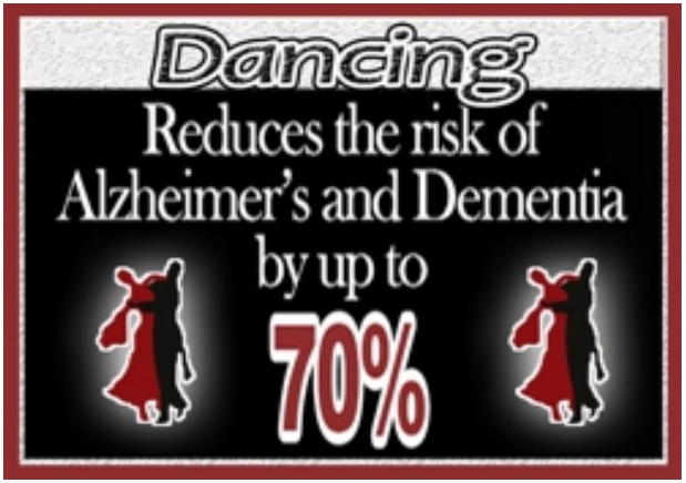 Según el New England Journal of Medicine, los estudios han encontrado que bailar aumenta la actividad cognitiva y, posteriormente, disminuye el riesgo de desarrollar demencia. Y según una lectura de estos resultados realizada por la Universidad de Stanford, bailar reduce con frecuencia el riesgo de demencia en un 76 %, considerablemente más que cualquier otra actividad estudiada, incluida la lectura. La razón de esto es que bailar requiere que tomes decisiones rápidas en una fracción de segundo, básicamente con cada paso que das. Se ha demostrado que este tipo de ejercicios aumentan y mantienen la función cerebral en personas de todas las edades. Según Stanford, en el baile social de estilo libre, tanto hombres como mujeres se abren espontáneamente a las infinitas posibilidades del momento, respondiendo a la pareja ya la música.