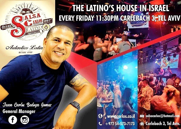 ¿Qué te impulsó en la Salsa? Carlos dice que creció escuchando Salsa en Cali. La lleva en la sangre y sus héroes eran El Gran Combo, Los Hermanos Lebron y Beny More. Incluso el timbre de la escuela primaria para señalar el recreo, sonaba en Salsa. En Israel, unos amigos colombianos le pidieron que organizara un evento de salsa y tuvo éxito. Según su que él sabe, es la primera persona que introdujo la salsa en Israel. Desde entonces, Carlos ha organizado eventos en Tel Aviv en lugares como el «Old Port». Aparte de los eventos especiales, celebra todos los viernes por la noche, a las 23:30 horas, Salsa Carlos en Carlbach 3, Tel Aviv. Le acompaña el DJ Manuel.